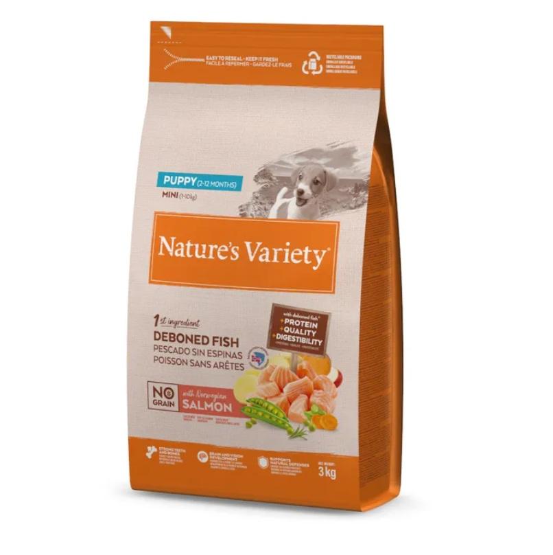Puppy Nature's Variety Original No Grain, Pienso para cachorros de razas pequeñas, Sin cereales, con Salmón sin espinas, 3kg